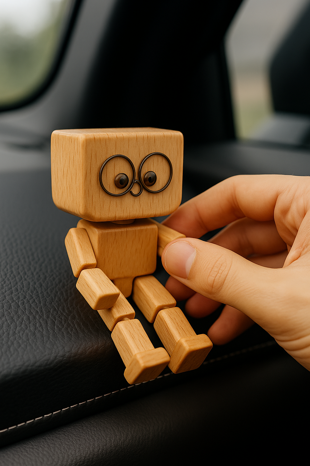 Este muñeco de madera incluye 12 expresiones magnéticas para que lo adaptes a cada momento. 🚗✨ Su estructura flexible se mueve con cada toque, mientras que su base con goma antideslizante lo mantiene estable y sin rayones. Compacto, original y hecho en madera, es el accesorio perfecto para personalizar tu espacio… o el regalo ideal para alguien especial.